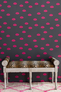 Lips - Hot Pink on Grey Wallcovering- Regular price